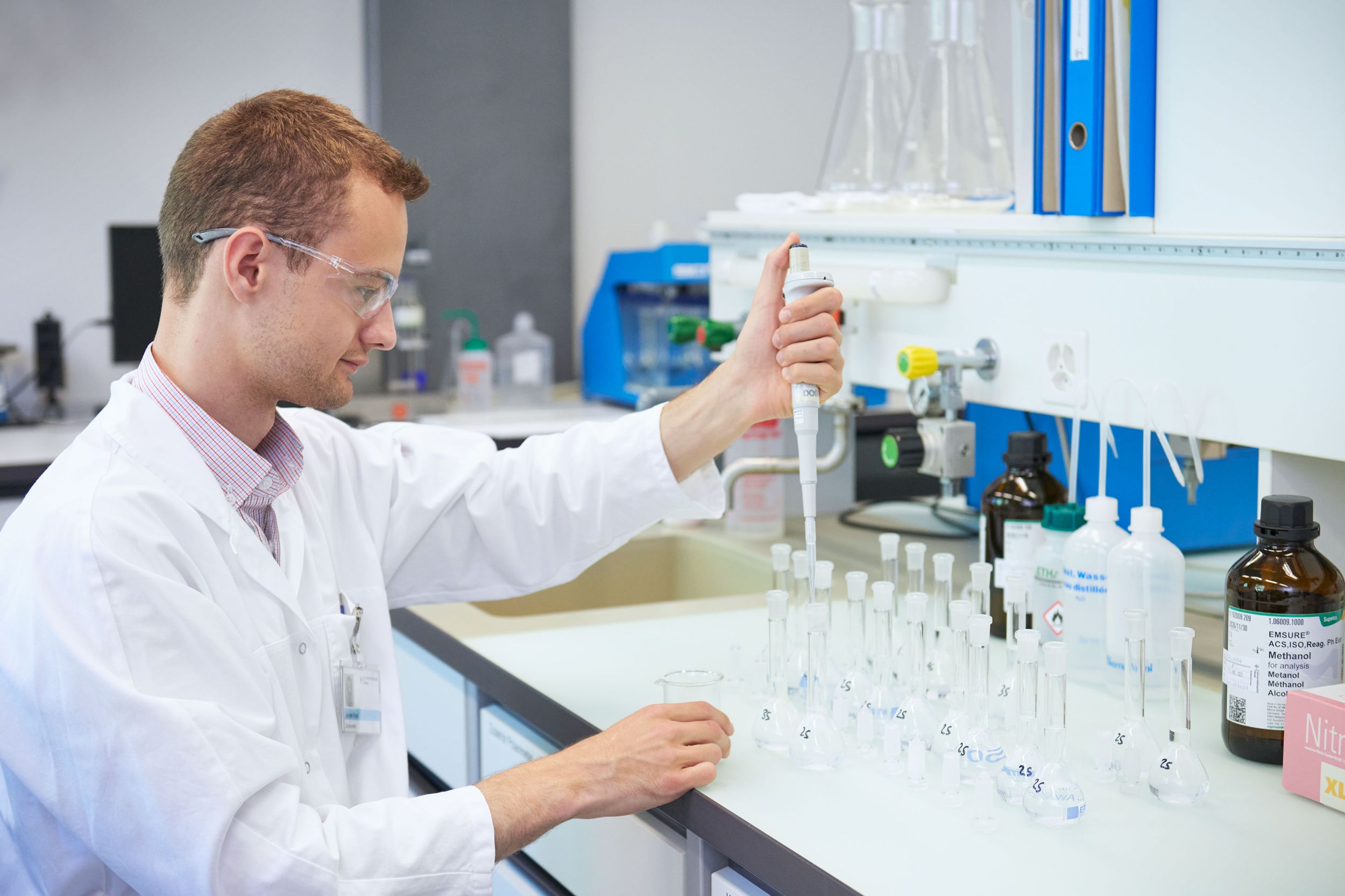 Forschender im Labor an Bunsenbrenner